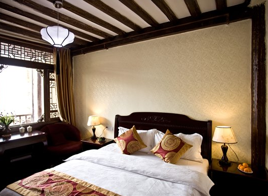 室内格局呈一室一卫,设有一张大床和独立卫生间,温馨舒适,适合两人入住。 客栈全新的设备、全实木的地板和红木家具,客房配有科勒卫浴,大瓶装品牌洗发露和沐浴液、高端家用床品、高清液晶电视、冷暖空调、加湿器等。